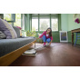 Podlahová myčka FC 2-4 je skvělým pomocníkem při úklidu díky své samonosné konstrukci a lehké váze pouhých 2,2 kg. Díky automatickému zapínání a vypínání je ovládání velmi intuitivní – stačí jednoduše zatáhnout za rukojeť čističe směrem dozadu a myčka se sama spustí. V jediném kroku pak snadno odstraní suché i mokré každodenní nečistoty. Baterie vystačí až 20 minut čištění, což je dostačující pro úklid plochy o rozloze cca 70 m2. Válec myčky se po aktivaci automaticky navlhčí vodou z nádrže na čerstvou vodu, což zajišťuje rovnoměrné a efektivní čištění tvrdých podlah vždy čistou vodou. Myčka umožňuje čištění až po okraj a díky integrovaným vlasovým filtrům lze snadno sbírat i vlasy a další nečistoty. Integrovaná hygienická nádrž na špinavou vodu zamezuje kontaktu s nečistotami a po použití ji lze snadno vyjmout a vyčistit. Přiložená výměnná baterie 4V od Kärcher Battery Power je kompatibilní se všemi 4V zařízeními této značky.