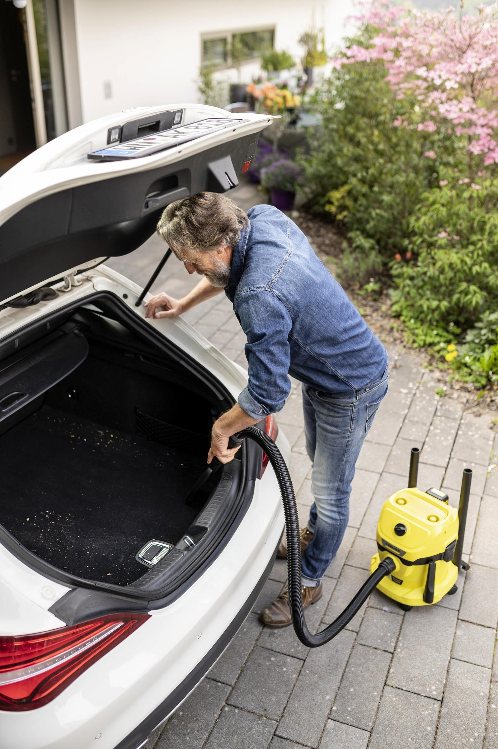 Bateriový vysavač na mokré a suché vysávání WD 2-18 je součástí 18 V bateriové platformy Kärcher Battery Power a nabízí maximální flexibilitu, kompaktní design a svobodu pohybu. Přístroj dokonale kombinuje 1,8 metru dlouhou sací hadici a klipsy podlahové hubice a dokáže během okamžiku odstranit mokré, jemné i hrubé nečistoty. Zařízení je také vybaveno robustní a nárazuvzdornou plastovou nádobou o objemu 12 litrů a také fleecovým filtračním sáčkem. Skladování sací hadice šetří místo; jednoduše jej zavěste na hlavu zařízení. Mezi další funkce patří praktická funkce fukaru pro oblasti, kde není možné vysávání, odkládací prostor na nářadí a drobnosti, otočný spínač pro snadné zapnutí a vypnutí přístroje, ergonomicky tvarované madlo pro přenášení a také "Pull & Push" uzamykací systém, který umožňuje snadné otevírání a zavírání nádoby. Parkovací poloha na nárazníku umožňuje rychlé a pohodlné uložení trubic a podlahové hubice při krátké přestávce při práci. Baterie a nabíječka nejsou součástí balení.