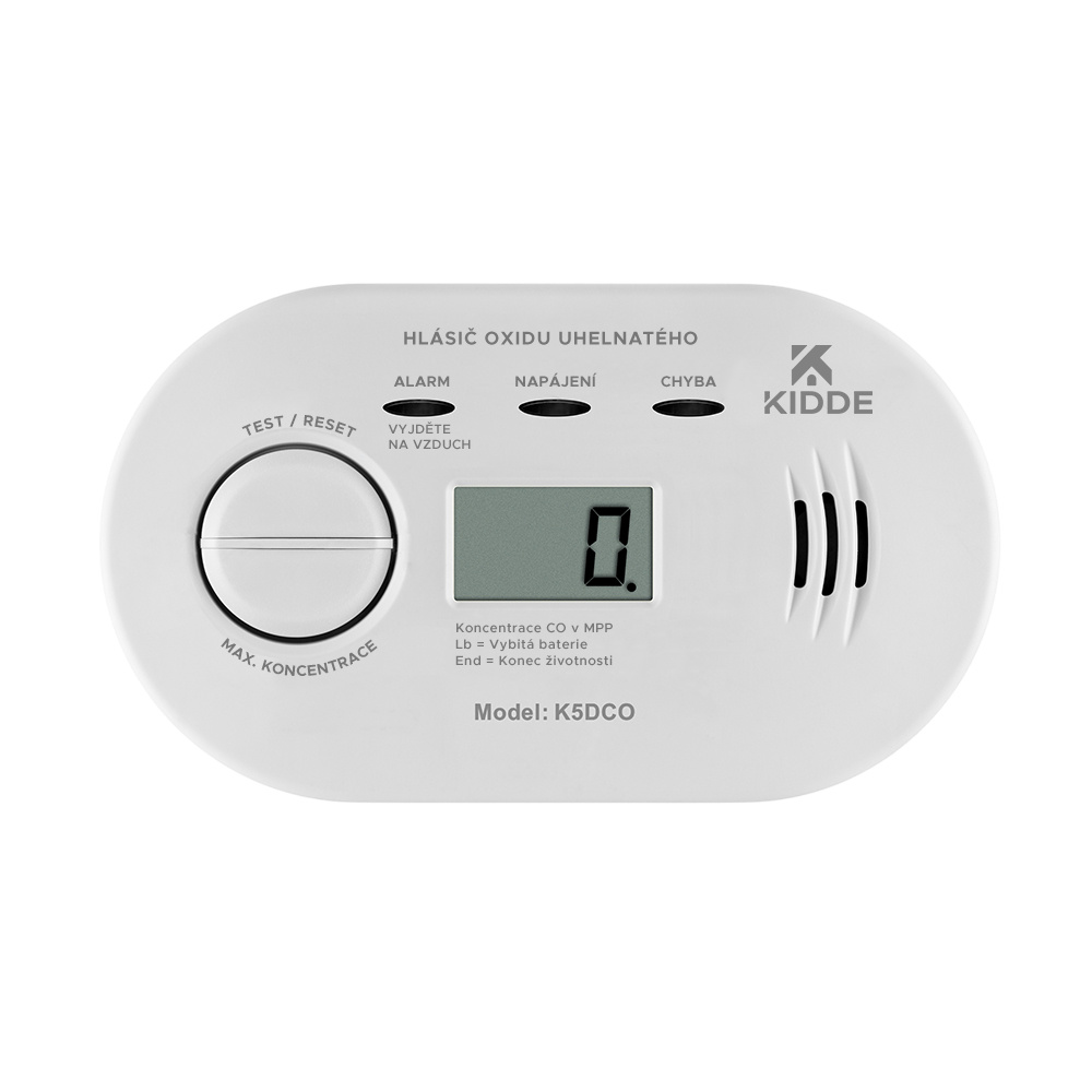 Ekonomické řešení a nízká pořizovací cena s elektrochemickým senzorem a 7-letou zárukou to je detektor oxidu uhelnatého (CO) Kidde K5DCO, který průběžně monitoruje přítomnost jedovatého oxidu uhelnatého v domácnostech nebo provozovnách, a tak poskytuje ochranu před jeho smrtelnými účinky. Kromě trojice kontrolních LED indikátorů disponuje také LCD displejem, na kterém průběžně zobrazuje naměřené hodnoty CO a další stavové informace. Hlásič lze pevně instalovat na stěnu nebo pro lepší pohodlí jednoduše volně položit na stůl, regál nebo jiný vodorovný povrch. Je ideálním bezpečnostním prvkem a spolehlivou ochranou před tímto tichým zabijákem nejen pro domácnosti, ale i v pronajatých ubytovacích prostorách nebo na dovolených.