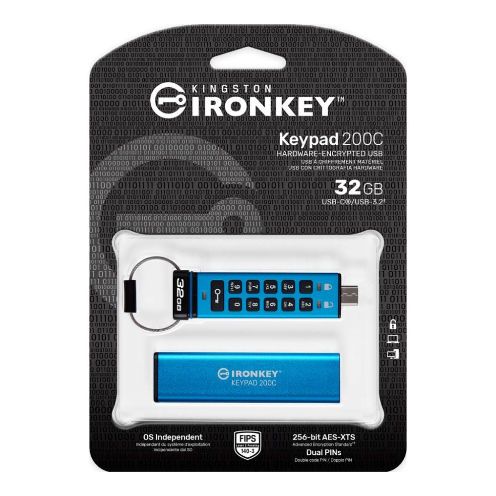 Řada Kingston IronKey Keypad 200 se skládá z hardwarově šifrovaných disků USB typu A a USB typu C nezávislých na operačním systému s alfanumerickou klávesnicí pro snadný přístup pomocí kódu PIN. KP200 obsahuje 256bitové hardwarové šifrování XTS-AES. Je také certifikován podle standardu FIPS 140-3 Level 3 (pending) pro zabezpečení vojenské úrovně s vylepšeními, která dále zvyšují laťku ochrany dat. Jeho obvody jsou pokryty vrstvou speciálního epoxidu, který prakticky znemožňuje vyjmutí součástek bez jejich poškození; tento odolný epoxid brání útokům na polovodičové součástky.