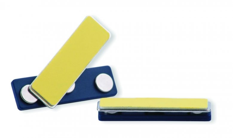 Dvoudílný, magnetický kovový klips se samolepící zadní stranou, rozměry: 45×12 mm. Slouží pro uchycení jmenovky na oděv. Na zadní stranu jmenovky se přilepí samolepící část. Volná část klipsu se přiloží je jmenovce ze zadní strany přes oděv. Magnet je dostatečně silný k tomu, aby jmenovku přes oděv udržel..