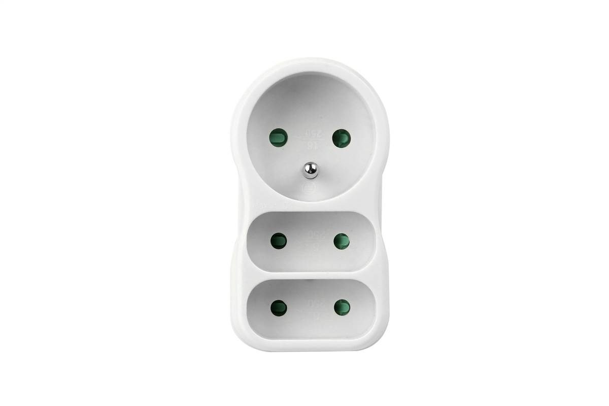 1x kulatá zásuvka + 2x plochá zásuvka 250 V~/ 2×2,5A 1x10A. Max 2300W.