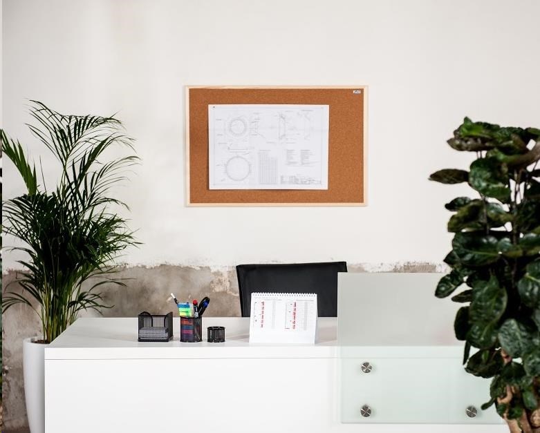 Korková nástěnka AVELI má vysoce odolný povrch proti poškození při práci s napínáčky a špendlíky. Má lehkou konstrukci s dřevěným rámem.