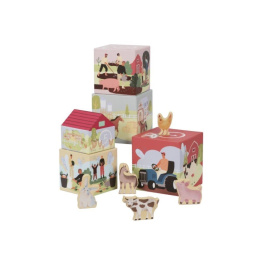 Skládací kostky z kolekce Farma nabízí spoustu možností ke hře. Kostky si děti mohou rozestavět po podlaze nebo na stole, postavit komín (věž) nebo si mohou pohrát s farmou a zvířátky v jejich skutečné, reálné, podobě. Každá z kostek seznámí děti s prostředím venkova, s číslicemi a barvami (použité barvy respektují paletu montessori). Kostky jsou stohovatelné, což usnadní úklid nejen rodičům, ale i dětem..