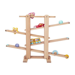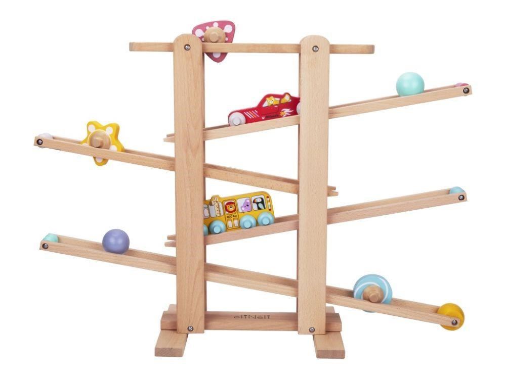 Dřevěná kuličková dráha XL s originálními prvky v podobě parádního závodního autíčka a autobusu se zvířátky ze ZOO ZDARMA nadchne každé dítko. Kuličková dráha z tvrdého přírodního dřeva se 7 zábavnými prvky v krásných barvách zajistí zábavu nejen vaší holčičce nebo chlapci, ale i celé rodině. Stačí správně umístit kuličku, květinu, závodničku nebo bus na začátek dráhy a pak jen sledovat, jakou rychlostí zdolá všechna patra..