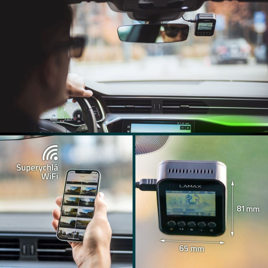 Dopravní džungle je plná nástrah, proto je dobrý mít důkaz, když se něco semele. Špičkový záběry v reálném 4K při 30fps ti poskytne LAMAX F10 GPS 4K, můžeš je mít i extrémně plynulý ve 2.5K při 60fps. Fakt kvalitní je i noční video. Když potřebuješ, stáhneš si je bleskovou rychlostí díky 5GHz Wi-FI, a to přes intuitivní aplikaci. Super záběry můžeš mít i z interiérové kamery s infrared přísvitem nebo zadní kamery, stačí si je dokoupit. Tvoje bezpečné dojetí do cíle si bere na starosti funkce GPS, která ti i prozradí, kde se ukrývají radary.