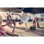 Šťáva vydrží PartyGo1 Play až 15 hodin, v klidu si tak jeho zvuk užívej i na cestách. Když potřebuje dodat energii, upozorní tě indikátor baterie. Ergonomické madlo, přibalený popruh přes rameno, kompaktní velikost a nízká hmotnost jsou další plusy nahrávající tomu, že se reprák stane tvým nerozlučným parťákem. Díky USB-A vstupu zvládne posloužit i jako powerbanka. Aby toho nebylo málo, rozumí si s hlasovými asistenty Siri a Google Assistant a při spárování s telefonem umožňuje ovládání hovorů.