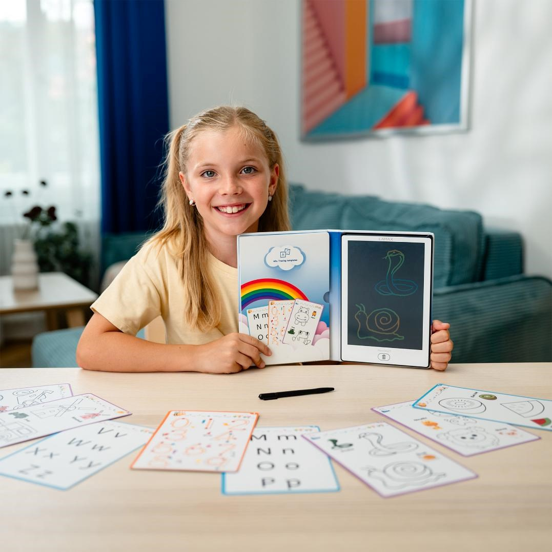 Ať už si děti chtějí kreslit zvířátka, trénovat první písmena nebo jen tak čmárat, co je právě napadne, LAMAX PencilKid1 jim poskytne prostor pro nekonečné tvoření. Kreslicí tabulka s 40 zábavnými obkreslovacími šablonami pomáhá rozvíjet kreativitu, jemnou motoriku i základy angličtiny. Předlohy je zábavným způsobem seznámí s písmeny, čísly, zvířaty, dopravními prostředky nebo třeba ovocem, a díky anglickým popiskům se děti přirozeně dostávají i k prvním cizojazyčným slovíčkům. Tabulka ale není určena jen pro nejmenší. Snadno si ji oblíbí i starší děti, které si do ní mohou zapisovat nápady nebo domácí úkoly do školy. Velká plocha nabízí dostatek místa pro psaní i kreslení a je zároveň šetrná k očím, protože nebliká a nevydává modré světlo. Po každém použití stačí jediné stisknutí tlačítka a plocha je připravena na nové nápady. Díky praktickému obalu ve tvaru knížky zůstane tabulka i se šablonami pěkně pohromadě a děti si ji mohou vzít kamkoliv – do školy, na výlet, k babičce nebo do čekárny u lékaře. A co je nejlepší? Není potřeba žádný papír, pastelky ani fixy. Jen jeden lehký pomocník, který podporuje tvoření, učení i zábavu ve chvílích, kdy potřebujete mít trochu klid.