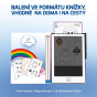 Velká plocha tabulky nabízí spoustu místa pro kreslení i zapisování nápadů, a přitom zůstává šetrná k dětským očím. Displej nebliká, nevyzařuje modré světlo a nenamáhá zrak ani při delším používání. Celý set, tabulka i šablony, je navíc uložený v praktickém obalu ve tvaru knížky, díky kterému zůstane všechno pěkně pohromadě a děti si tak mohou vzít zábavu kamkoliv s sebou.