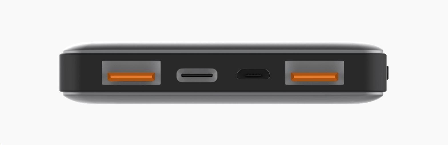 - 2 USB QC3.0 výstup + USB-C konektor pro vstup/výstup (input/output)
