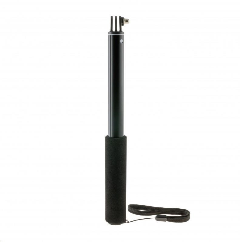 Držák je vybaven rukojetí s příjemným gumovým potahem proti prokluzu, doplněnou poutkem a na spodním konci stativovým závitem, díky kterému můžete monopod připojit k dalšímu příslušenství. Na horním konci má tyč adaptér pro snadné připojení akční kamery jakékoliv značky.