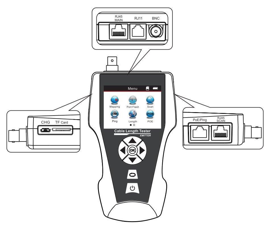 Pokročilý tester pro testování a diagnostiku různých typů kabelů/vedení. Využívá technologii TDR (Time Domain Reflectometry) k přesné lokalizaci a identifikaci závad ve vedení. Zařízení je vybaveno velkým LCD displejem, který zobrazuje všechny patřičné informace a podporuje vícejazyčné nastavení. Kromě toho je vybaven vestavěným tónovým generátorem a funkcí vyhledávání portů, takže je ideální pro testování síťových kabelů, telefonních linek a videokabelů.