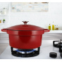 Litinový 6l smaltovaný vnitřní hrnec je možné bez problémů vyjmout a vložit do trouby či postavit na různé typy sporáků. Vydrží teplotu až 250°C.