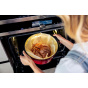 Součástí elektrického multicookeru je OvenSafe® litinový smaltovaný vnitřní hrnec, který odolává teplotám až 250°C a hodí se i pro použití v troubě či na různých typech sporáků. Litina oplývá schopností absorbovat teplo a předávat ho surovinám uvnitř, které se tak připravují při konstantní teplotě. Dochází k úspoře energie a tím i peněz. Šťavnatost a křupavost jídlům zajišťuje speciální poklice, která je navržena tak, aby docházelo k rovnoměrné distribuci vlhkosti uvnitř hrnce.