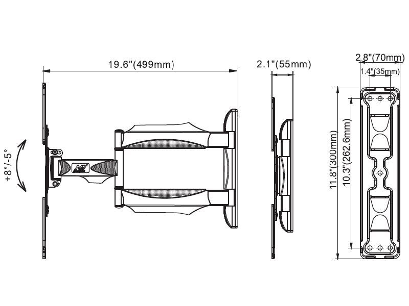 Kvalitní a spolehlivý držák na LCD LED Tv 32-55", VESA 100x100 až 400x400, otáčení do stran +/-90°, naklápění +5°/-8°, vzdálenost od zdi 53-499mm, korekce roviny, kryty na kabely, nosnost 31,8kg, TOP kvalita a design.