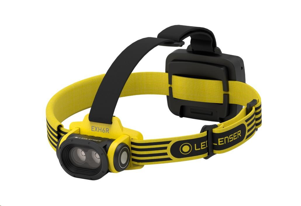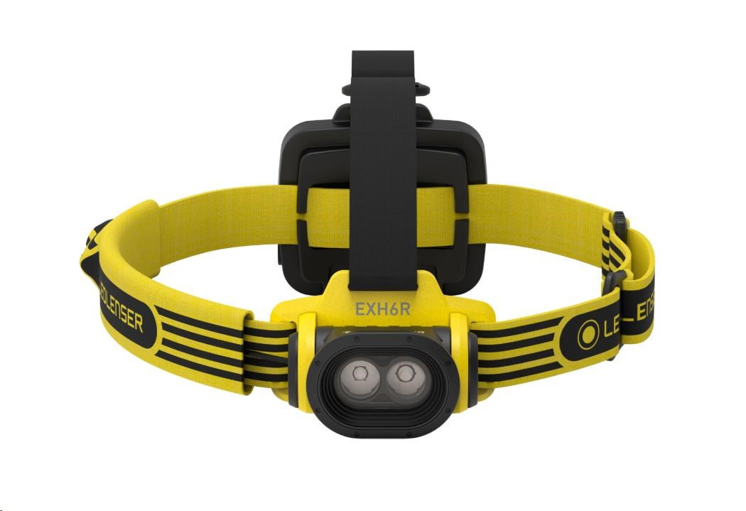 Kompaktní profesionální čelovka EXH6R poskytuje nastavitelné osvětlení v prostředí s nebezpečím výbuchu. Snadno se připevňuje – i na helmy s příslušným příslušenstvím – a poskytuje jasné a spolehlivé osvětlení na krátkou i dlouhou vzdálenost. Pokud se baterie vybíjí, čelovka vydává světelný signál a poskytuje dostatečnou dobu provozu, aby bylo možné bezpečně opustit pracovní prostor. EXH6R se vyznačuje integrovanou baterií, kterou lze v případě potřeby vyměnit, a je vybavena stavovou LED diodou a samostatnou profesionální nabíjecí základnou. Baterie je umístěna v zadní části hlavy, aby bylo zajištěno ideální rozložení hmotnosti; baterii lze také připevnit k oděvu nebo vybavení pomocí prodlužovacího kabelu.