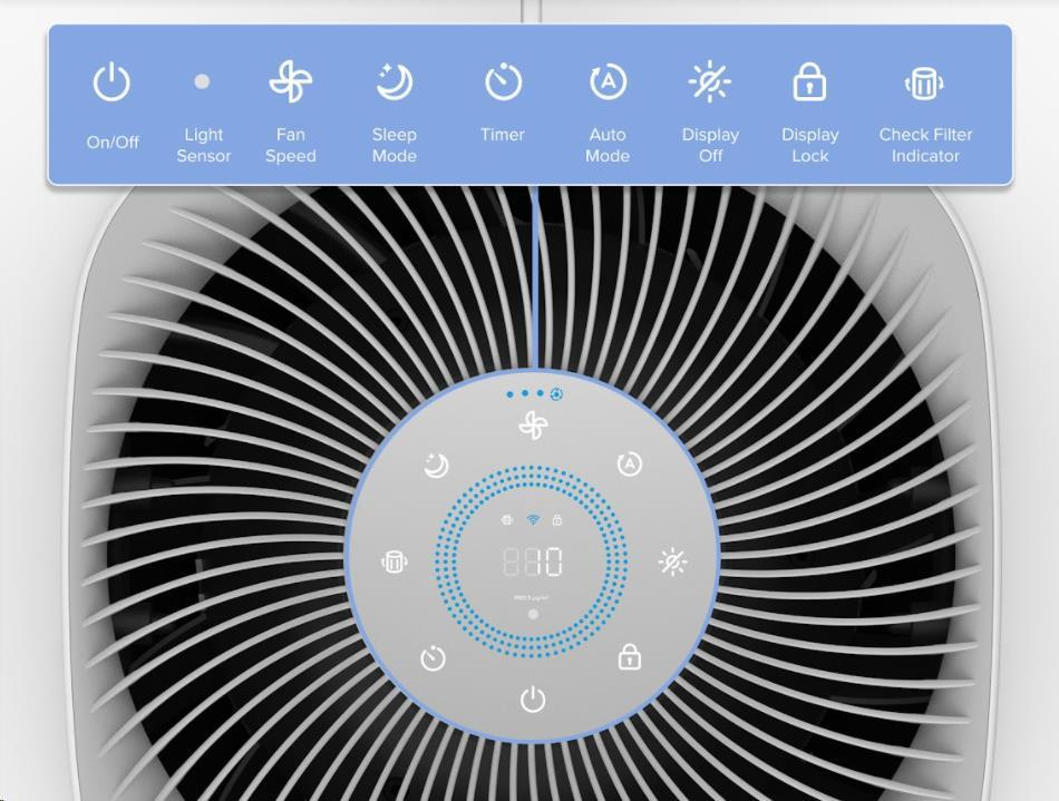 Chytrou čističku vzduchu Levoit Core 600S Smart můžete ovládat přímo na displeji nebo také přes aplikaci určenou pro smartphony a tablety Android a Apple. V aplikaci si můžete nastavit různé režimy, výkon, sledovat proces čištění, úroveň znečištění vzduchu nebo stav, v jakém se filtr nachází. Přes Amazon Alexa nebo Google Assistant můžete také zařadit čističku do svého Smart Home a dávat jí pokyny hlasem.