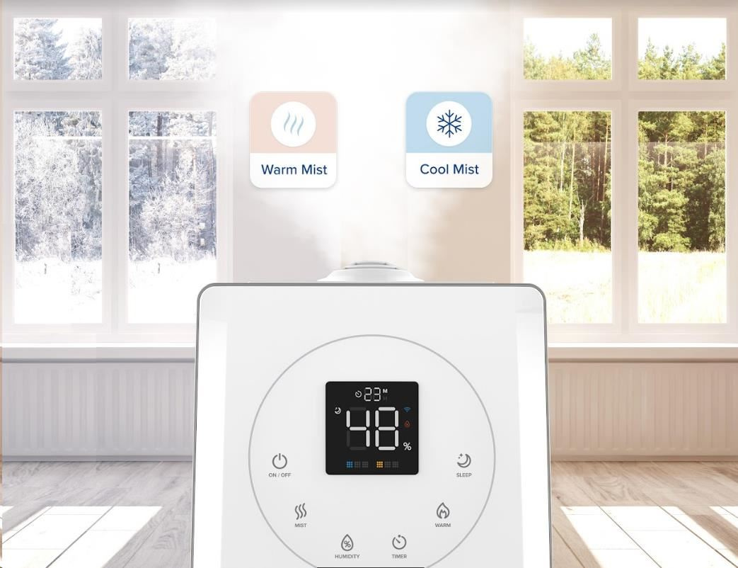 Zvlhčovač vzduchu Levoit LV600S Smart lze ovládat přímo na přehledném podsvíceném LED displeji nebo také přes aplikaci na chytrých zařízeních Apple nebo Android. Nebo si ho můžete dokonce připojit do svého Smart Home a ovládat hlasem přes Google Assistant nebo Amazon Alexa. Senzor vlhkosti zobrazuje vlhkost v reálném čase a v automatickém režimu tak okamžitě reaguje na změny vlhkosti. Vždy by se mělo jednat o rozmezí mezi 40 % až 60 %. Přes aplikaci si můžete informace kontrolovat nebo si své režimy plánovat.