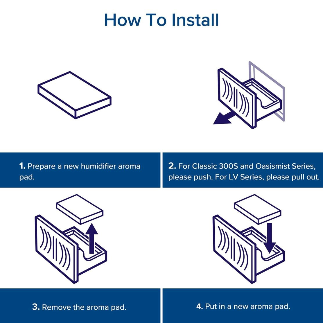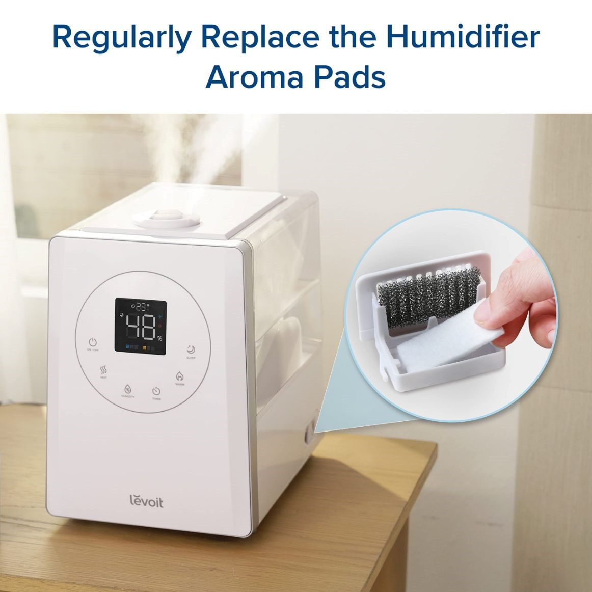 Podložky pro použití esenciálních olejů pro aromaterapii pomocí zvlhčovačů Levoit. Aroma polštářky oporučujeme měnit v závislosti na frekvenci používání. Nepřidávejte esenciální oleje, nebo jiné vonné přípravky do zásobníku na vodu nebo do komory základny. Esenciální oleje přidávejte pouze na aroma podložky.