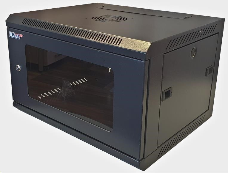 LEXI-Net 19" nástěnný rozvaděč 9U 600x450, nosnost 60 kg, skleněné dveře, rozložený, černý