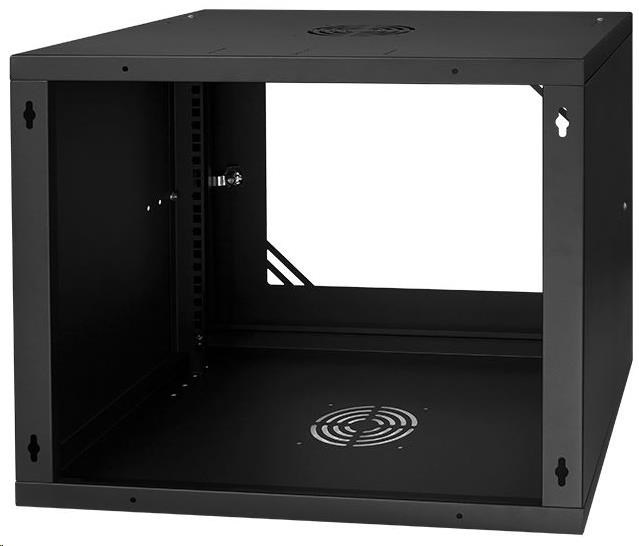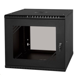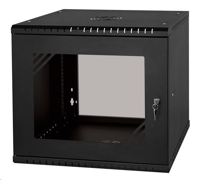 LEXI-Net 19" nástěnný rozvaděč Basic 9U 525x450, skleněné dveře, bez zad, rozložený, černý