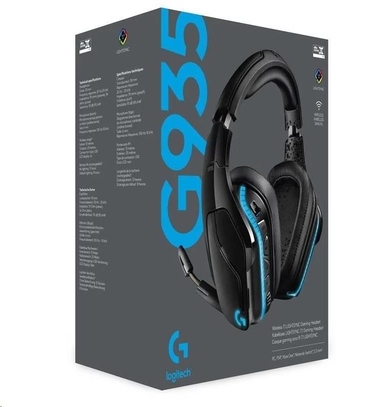 Logitech herní sluchátka G935, Wireless 7.1, LIGHTSYNC Gaming Headset - EMEA