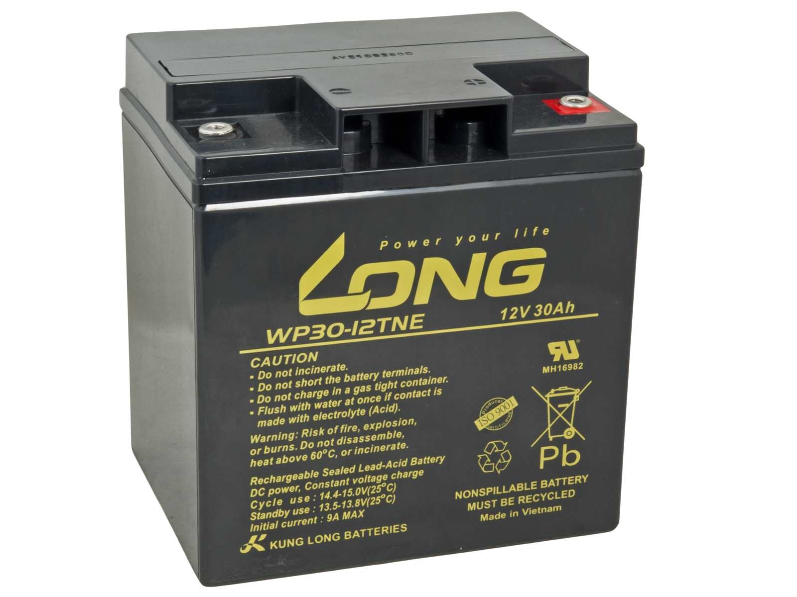 Rozměry: 166 x 126 x 176mm Parametry: Konektory: M6 Napětí: 12V Kapacita: 30Ah Rozměry (d x š x v): 166 x 126 x 176mm Rozměrové tolerance: 166(+2-1) x 125,5(+2-1) x 176(+2-1)mm Hmotnost: 9,3kg Elektrolyt: AGM Typ akumulátoru: DeepCycle VRLA - Ventilem řízený olověný akumulátor z anglického Valve Regulated Lead Acid je typ bezúdržbového akumulátoru, který lze provozovat v libovolné poloze, protože elektrolyt není v tekutém stavu. Hlavní vlastnosti akumulátoru jsou spolehlivost, dlouhá provozní životnost, otřesuvzdornost a vysoká kvalita zpracování. AGM - Akumulátor s elektrolytem nasáknutým do netkané textilie ze skelného vlákna (Absorbed Glass Mat) DeepCycle - Akumulátor určený pro cyklické vybíjení a nabíjení s možností hlubokého vybití, často nazývaný jako trakční baterie. Nejčastější aplikace a oblasti využití: - Elektrické invalidní vozíky a skútry - Rybářské čluny a lodě - Echoloty a sonary - Golfové vozíky - Fotovoltaické systémy - Karavany, obytné vozy a kempování - Dětská elektrická vozítka a hračky - Semafory, výstražné značení pro řízení dopravy - Manipulační technika a vysokozdvižné vozíky - Zahradní traktory a sekačky.