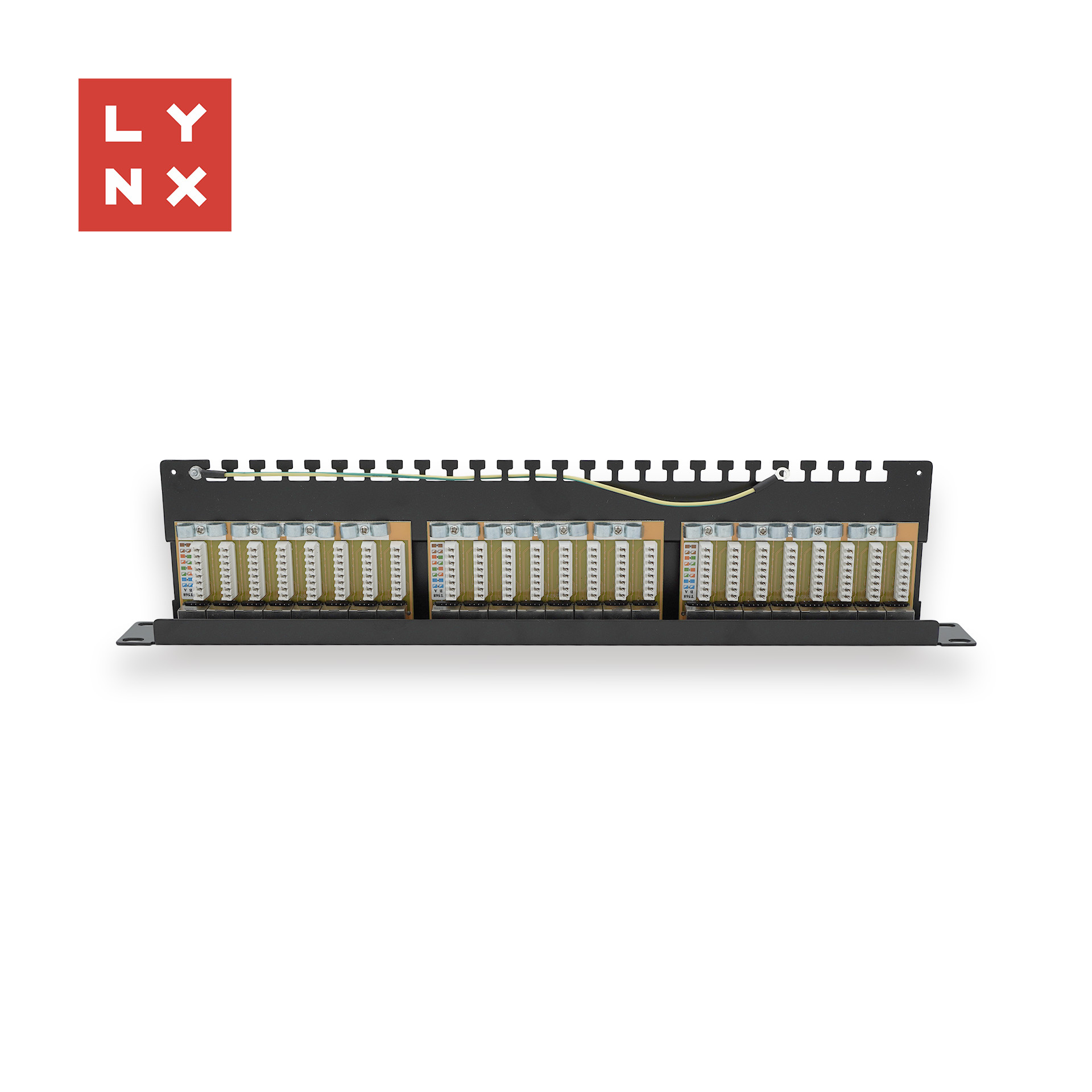 LYNX 19" patch panel 24-port, STP Cat6a, 50µ, stíněný, černý