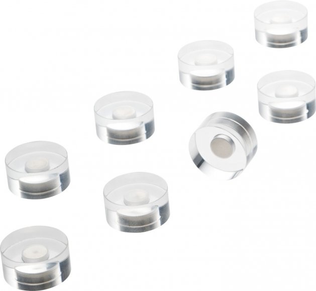 Designový magnet Magnetoplan Acryl s neodymovým extra silným jádrem. Přídržná síla cca 1,6 kg. Průměr 20mm. Známka ochrany průmyslového designu..
