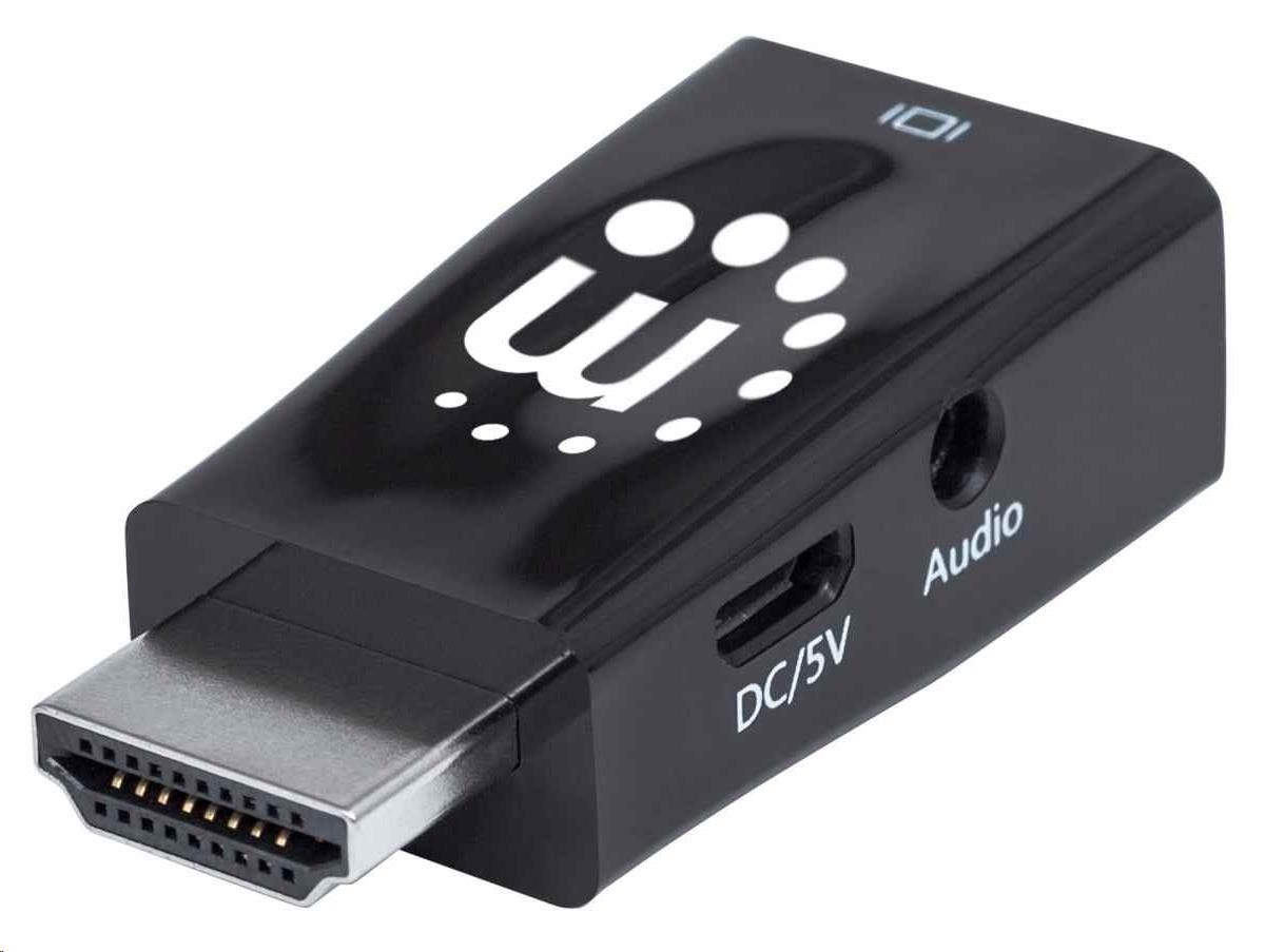 Manhattan adaptér HDMI na VGA, Micro Converter, HDMI Male na VGA Female, audio, černá