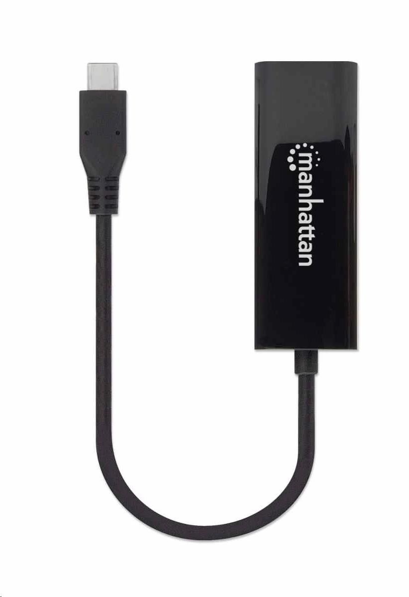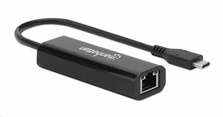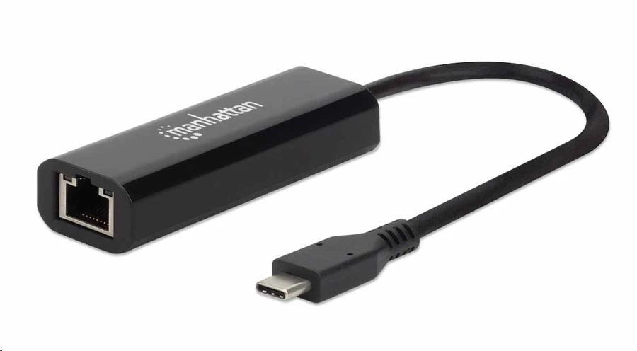 Manhattan adaptér USB-C na 2.5GBASE-T Ethernet, USB 3.2 Gen 1; 10/100/1000 Mbps & 2.5 Gbps, černá