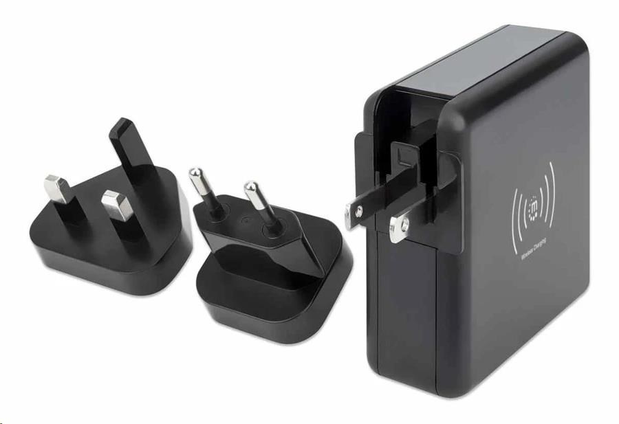 Manhattan cestovní nabíječka a powerbanka, 4-in-1, 8.000 mAh, Interchangeable US/EU/UK Plugs, černá