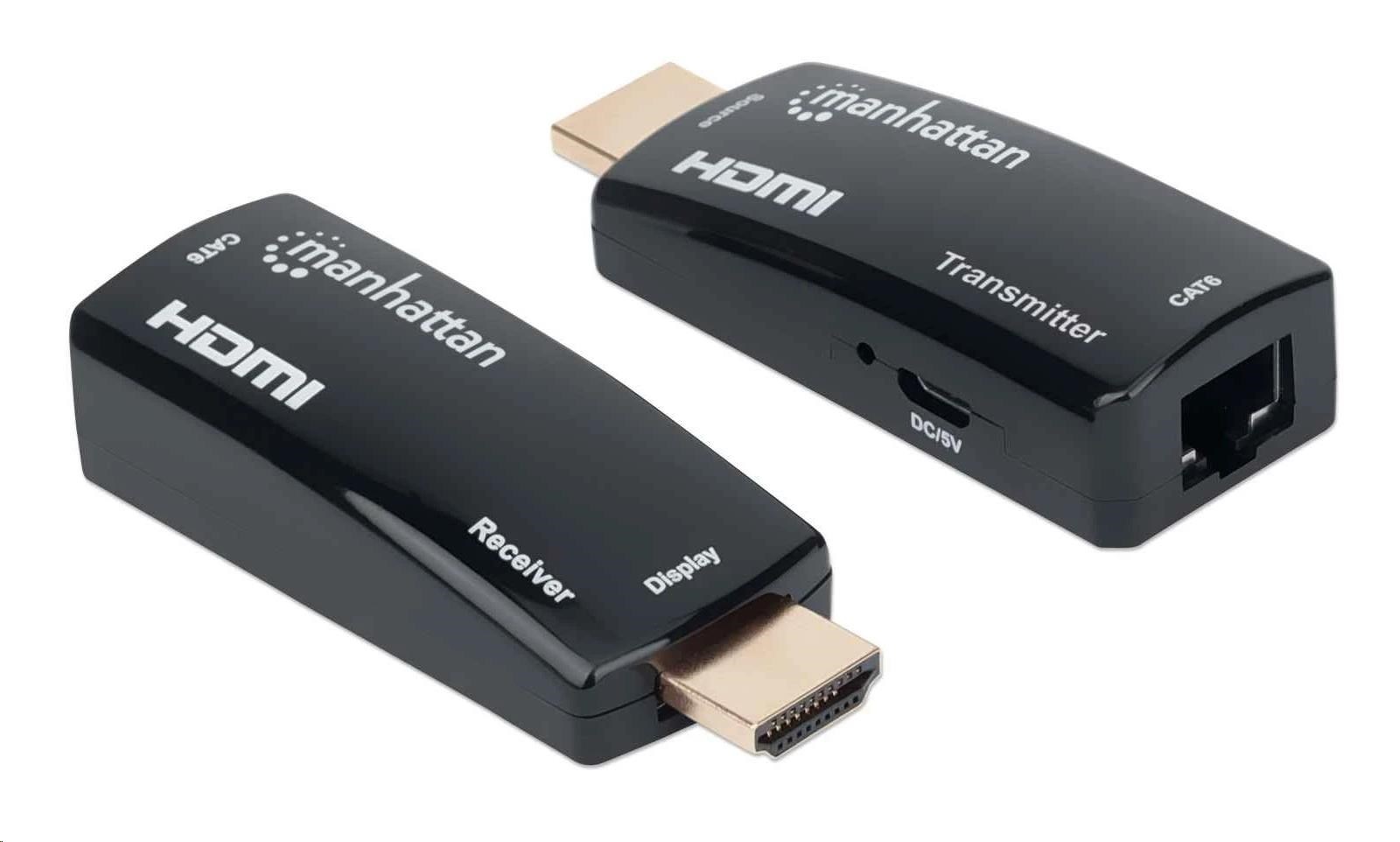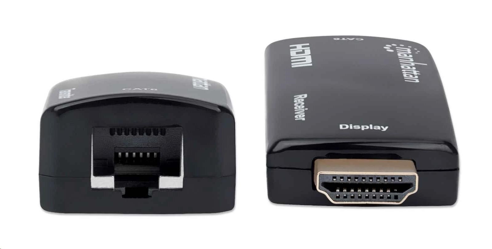 MANHATTAN HDMI Extender by Single Cat5e/6 up to 60m, Black, Retail Box