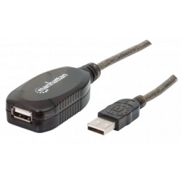 Use the Manhattan Hi-Speed USB Active Extension Cable to connect a computer USB port to a USB device almost anywhere in the room. Up to three daisy-chainable cable extensions provides a convenient, 30 m (99 ft.) connection. Manhattan Hi-Speed USB Active Extension Cable with built-in repeater is fully compliant with USB 1.1 and Hi-Speed USB specifications to help devices operate at maximum performance levels. Plug- and-play capability, Windows/Mac versatility and no external power or driver requirements help provide greater flexibility in computer and peripheral placement and office layout.