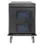 Vestavěné AC zásuvky v PDU na zadní straně jednotky usnadňují nabíjení zařízení, jako jsou notebooky, notebooky, tablety, telefony a mnoho dalších pomocí jejich napájecích adaptérů nebo nástěnných nabíječek. Správci mají pohodlný přístup přes dvířka na zadní straně jednotky, aby se mohli zapojit do zásuvek a přivést kabely k zařízením v přední části.