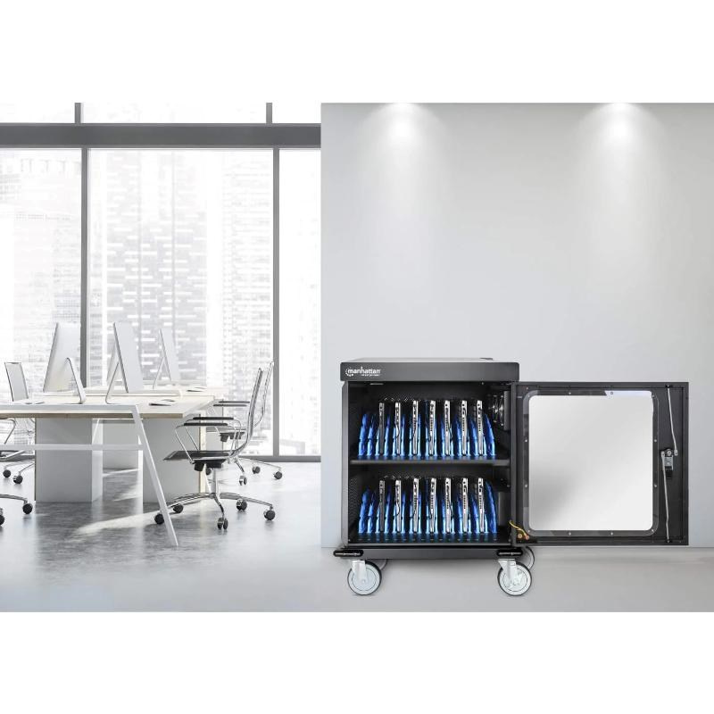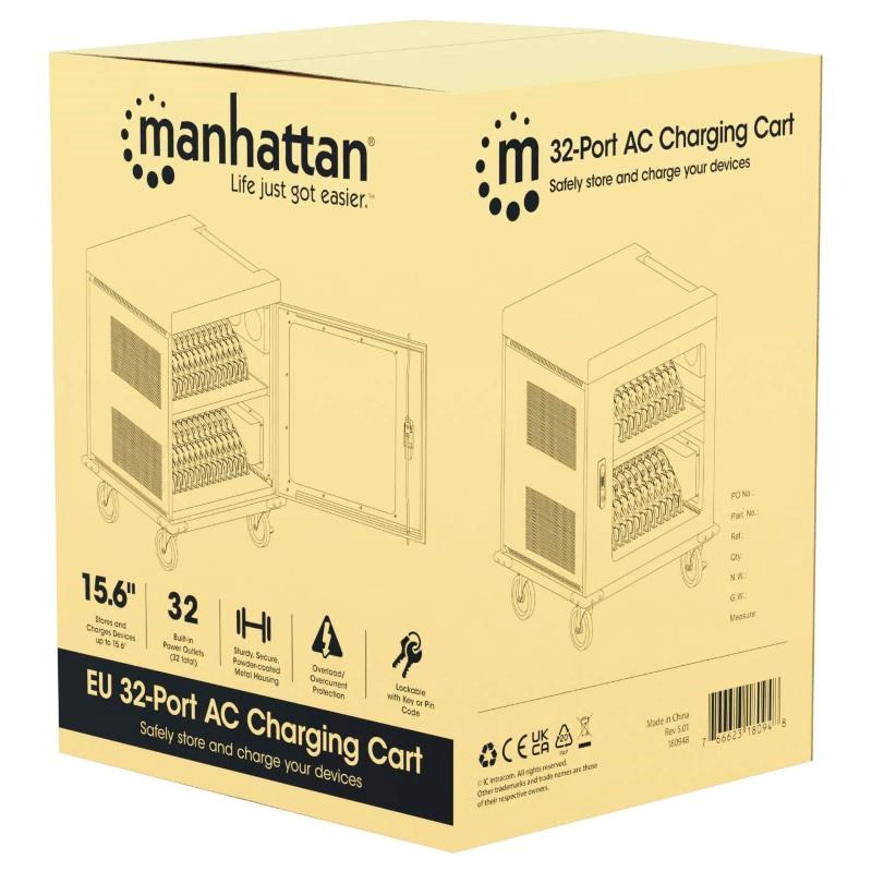Nabíjení a ukládání zařízení je snadné s nabíjecím vozíkem Manhattan 32-Port AC Charging Cart. Je to ideální řešení pro udržování připravených a bezpečných zařízení ve školách, restauracích, tělocvičnách, lékařských ordinacích, univerzitách, hotelech, půjčovnách aut a dalších, takže můžete efektivně a efektivně pomáhat svým studentům, hostům, pacientům, zákazníkům a patronům.
