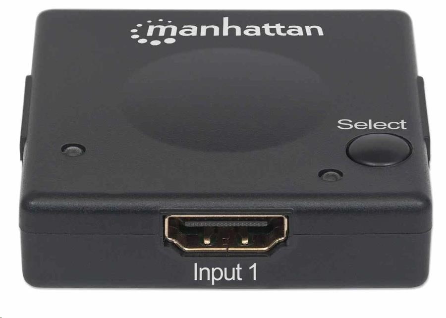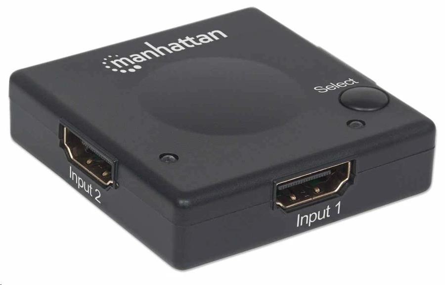 Easily connect multiple HDMI sources to a single display.The Manhattan 1080p 2-Port HDMI Switch connects two HDMI video sources — including gaming consoles, Blu-ray players, satellite receivers, digital recorders, set-top boxes and other devices — to a single high-definition display.Flexible Solution for Many HD ApplicationsWith the increased number of high-definition media devices available, the Manhattan 1080p 2-Port HDMI Switch expands the connectivity options for your HDTV, flat-panel display monitor or video projector. The switch automatically detects and selects the active HDMI source and routes the signal to your display. Additionally, its manual selection button allows users to select sources when more than one HD video source is on at the same time.Best Possible Image QualityFull compliance with HDMI and HDCP 1.0 and 1.1 ensures that the Manhattan 1080p 2-Port HDMI Switch provides high-quality performance and reliability. It delivers full 1080p resolution images and supports 3D video as well as LPCM, DTS and Dolby TrueHD audio.