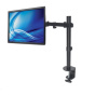 Constructed from durable steel, this single monitor mount features a sturdy clamp that allows for quick, easy and secure mounting without the need to drill holes into desks or countertops. Effectively accompanying a larger display or computer screen, its fully adjustable tilt, rotate, side-to-side, height and tension settings create the perfect position to comfortably increase productivity. Such adjustment capabilities can even help reduce eye fatigue or neck and back strain. In addition, the mount pole offers easy monitor rotation to allow others to view presentations and multimedia productions from almost any direction.
