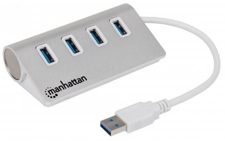 The Manhattan 4-Port SuperSpeed USB 3.0 Hub easily expands USB access for desktop and mobile use to connect more peripherals and mobile devices. Create more connections for SuperSpeed USB 3.0 devices like storage devices and Web cameras. It's backward compatible with previous USB standards, providing versatility for attached devices. The Manhattan 4-Port SuperSpeed USB 3.0 Hub offers plug-and-play and hot-swap capabilities, Windows and Mac compatibility and data transfer speeds up to 5 Gbps, consolidating numerous, less-capable hubs into a single USB solution.