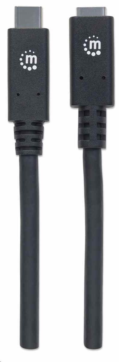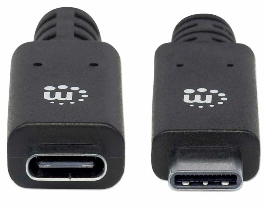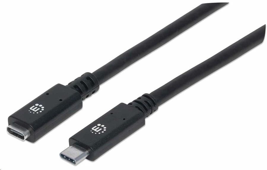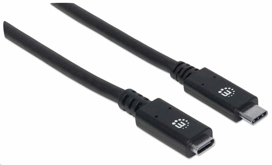 Manhattan USB-C kabel, USB 3.1 Gen 2, USB-C Male na USB-C Female, 10 Gbps, 5 A, 50cm, černá