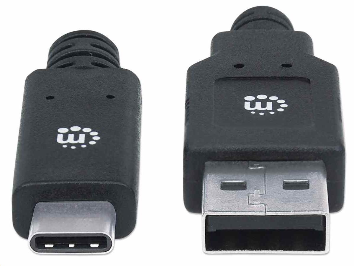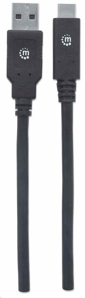 Manhattan USB kabel, USB 3.2 Gen 1, USB-A Male na USB-C Male, 5 Gbps, 2m, černá