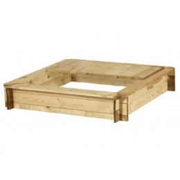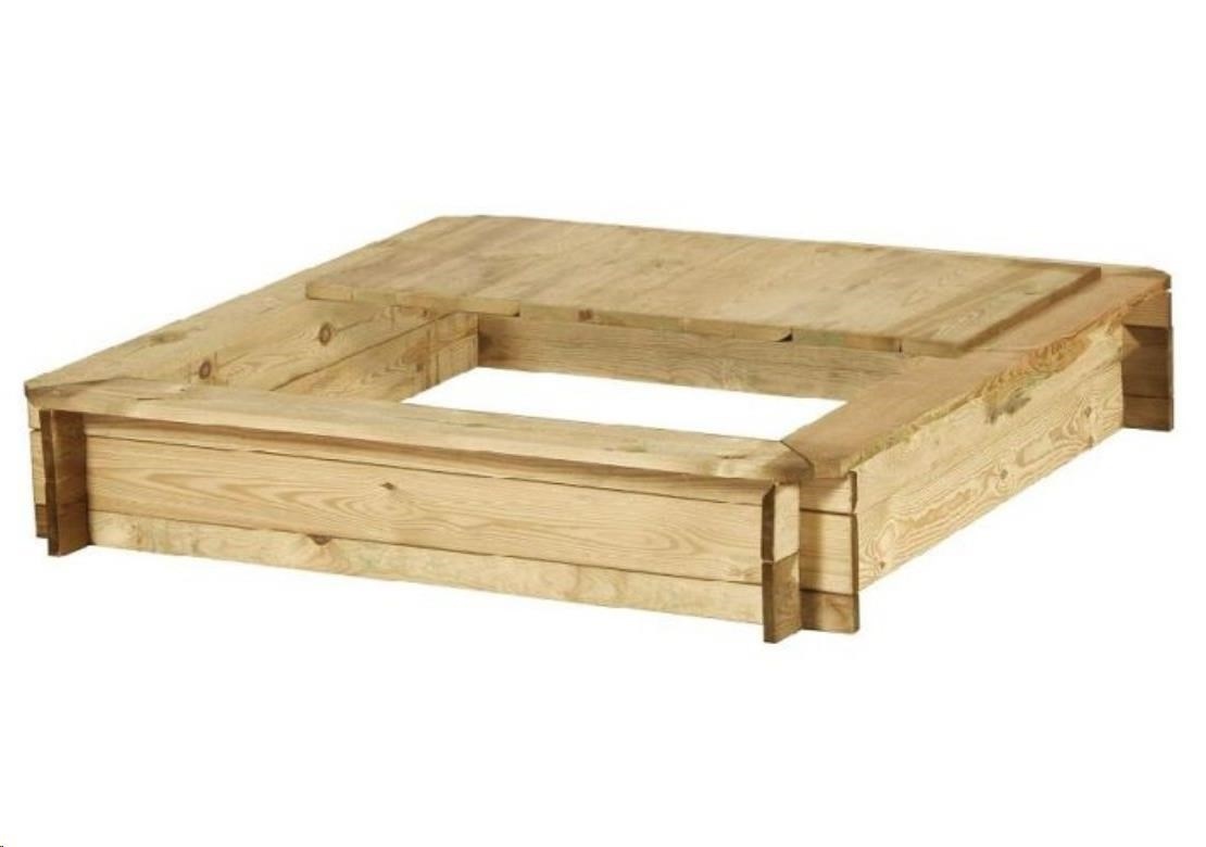 Dřevěné čtyřhranné pískoviště se čtyřmi sedátky a krytem. rozměry: 120 x 120 x 20 cm 4 sedáky a kryt uzavřením krytu je pískoviště chráněno před nečistotami a domácími zvířaty dřevo je ošetřeno hloubkovou impregnací KDI, neboli tzv. "zelenou impregnací" vyrobeno v EU splňuje normu EN-71 dodáváno v rozloženém stavu včetně spojovacího materiálu není určeno pro komerční účely pro děti od 3 let druh dřeva: Borovice.