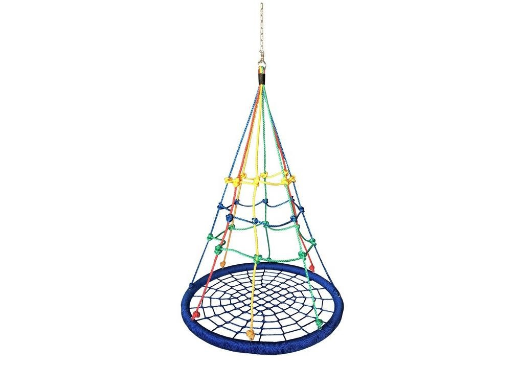 Závěsná houpačka ve tvaru kruhu je svým průměrem 100 cm a nosností až 150 kg ideální nejen pro děti, ale i dospělé. Velká sedací plocha houpačky nabízí volnost při houpání i dostatečný prostor pro lenošení. Houpačka je zavěšena na 4 délkově nastavitelných lanech, která jsou zakončena kovovými kroužky pro zavěšení na nosnou konstrukci.