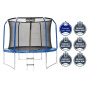 Vnitřní ochrannou síť najdete přímo v balení, nemusíte si ji dokupovat zvlášť. Vnitřní ochranná síť je bezpečnější než vnější síť - brání přístupu skákajícího do části s pružinami. Vstupní prostor je zajištěn třemi přezkami a brání vypadnutí. Tyče jsou obaleny ochranným návlekem z měkčené pěny. Nohy trampolíny jsou samostatné a zvyšují stabilitu celé trampolíny. Spojení tyčí nohou trampolíny a sítě je jištěno speciálními sponami.