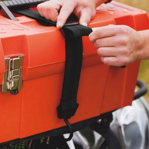 Speciální upínací popruh o šířce 40 mm zakončený háčky. Nastavitelná délka od 600~1 200 mm. Otáčivé háčky pro snadnější upevnění nákladu. Maximální nosnost 50 kg. Plastem kryté háčky zabraňující poškození nákladu.