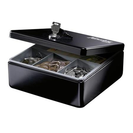 Box má pevnou ocelovou konstrukci. Je zde vyjímatelný tác s přihrádkami pro mince a bankovky.