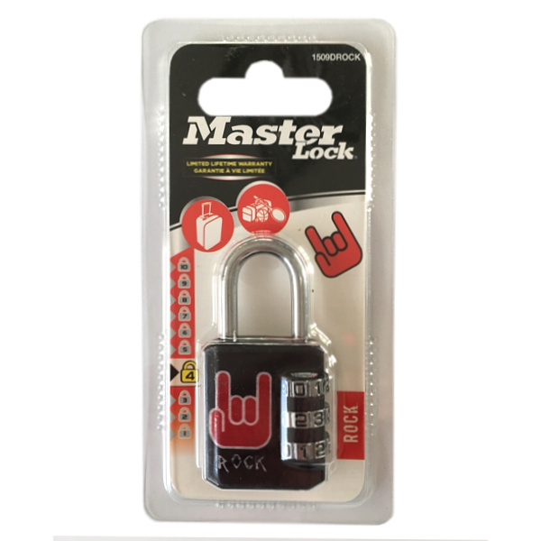 Visací kombinační zámek 1509EURDROCK pro všeobecnou ochranu. Zinkové tělo zámku je o šířce 30mm. Ocelový třmen o průměru 5mm je dlouhý 22mm a je vyroben z pochromované oceli a nabízí odolnost proti řezání. Vlastní nastavení 3-místné kombinace zámku nabízí pohodlí bez klíče.