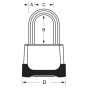 - Visací zámek o šířce 56 mm s tělem ze zinkového odlitku s chromovou úpravou vysoce odolným proti korozi.