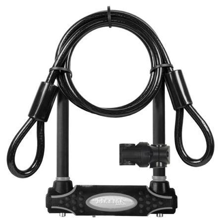 Tělo zámku a třmen o průměru 16 mm z tvrzené oceli odolné proti povětrnostním vlivům. Vinylový potah třmenu zabraňuje poškrábání laku. Zámek obsahuje diskovou cylindrickou vložku odolnou proti vyhmatání a dvojitou západku odolnou proti vypáčení. Navíc zámek obsahuje 1 200 mm dlouhé ocelové lanko o průměru 10 mm pro dodatečnou ochranu. Krytka klíčové dírky zabraňuje vniknutí nečistot. Součástí balení je držák pro praktické skladování a 4 ks klíčů.