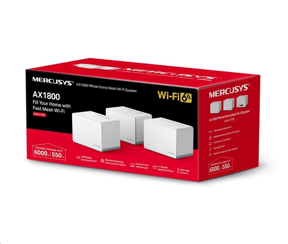 MERCUSYS Halo H70X(3-pack) WiFi6 Mesh (AX1800,2,4GHz/5GHz,3xGbELAN/WAN)